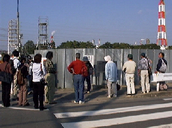 また、この近くには、原油を運ぶためのパイプがうめられている。みんなが立っているところには、「もし、異常に気づいたら・・・」という立て札が立っている。この先には、大きな原油のタンクがある。果たして、本当に大丈夫だろうか?と思ってしまう。古くなった工場を見ていると。